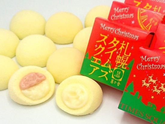 ふわふわのスポンジ生地でれん乳クリームを包んだ「れん乳」味と、甘酸っぱいイチゴクリームとれん乳クリームを包んだ「れん乳いちご」の2つの味の札幌タイムズスクエアを、クリスマスのパッケージでお届けします。
