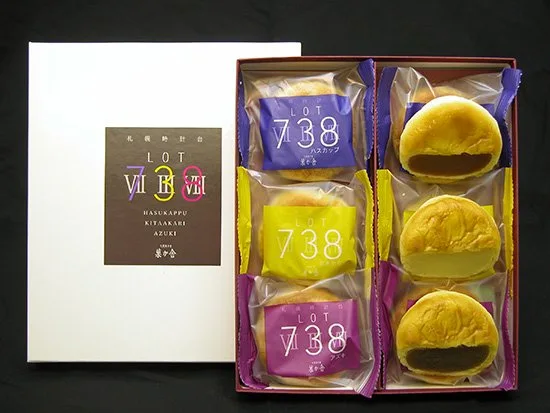菓か舎の「ロット738」は北海道産の小豆、ハスカップ、北あかり(じゃがいも)を使用した3種類の餡を、パイ生地で包んだパイ饅頭です。